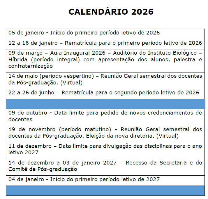 Calendário - Programa de Pós-graduação em Aquicultura e Pesca